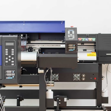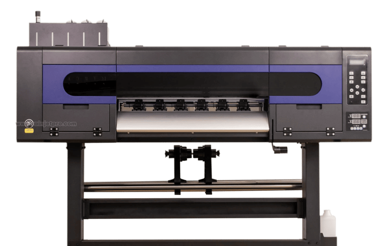 UV DTF Printers → Desktop A3(30cm) models, A2(60cm) roll-to-roll systems or flatbed UV printers for rigid materials